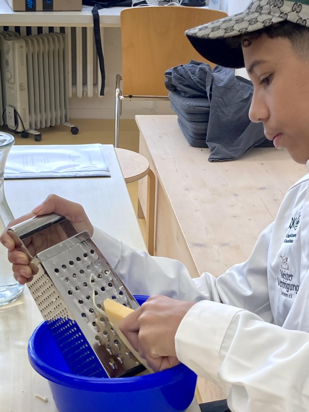 Normalerweise sind die Kinder einer Schlemmerbande neun bis zwölf Jahre alt. In der neuen Gruppe in Schwendi-Schönebürg sind die jungen Köche fast schon im Azubi-Alter, aber es handelt sich auch um ein ganz besonderes Projekt. Die Vinzenz-von-Paul-Schule ist in der Trägerschaft der Stiftung Katholisch Freie Schulen und ein Sonderpädagogisches Bildungs- und Beratungszentrum mit dem Förderschwerpunkt emotionale und soziale Entwicklung. Die derzeit 86 Kinder und Jugendlichen bringen unterschiedliche Erfahrungen und Herausforderungen aus ihrem Alltag mit und finden hier ein Lernumfeld, das sie individuell unterstützt. Die Berufsorientierung nimmt in der Oberstufe einen wichtigen Stellenwert ein. Die Schülerinnen und Schüler haben in der 9. Klasse die Möglichkeit, einen Hauptschulabschluss zu erlangen.