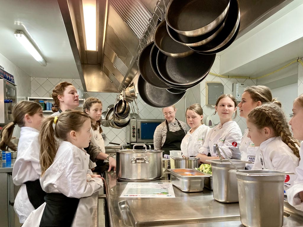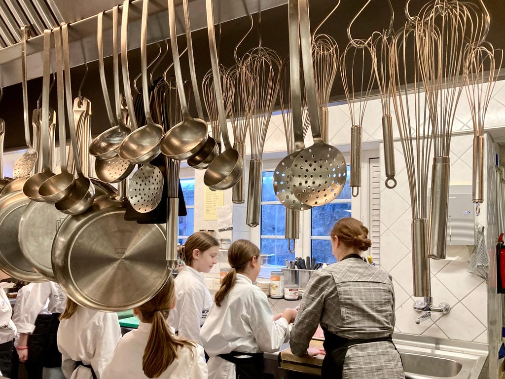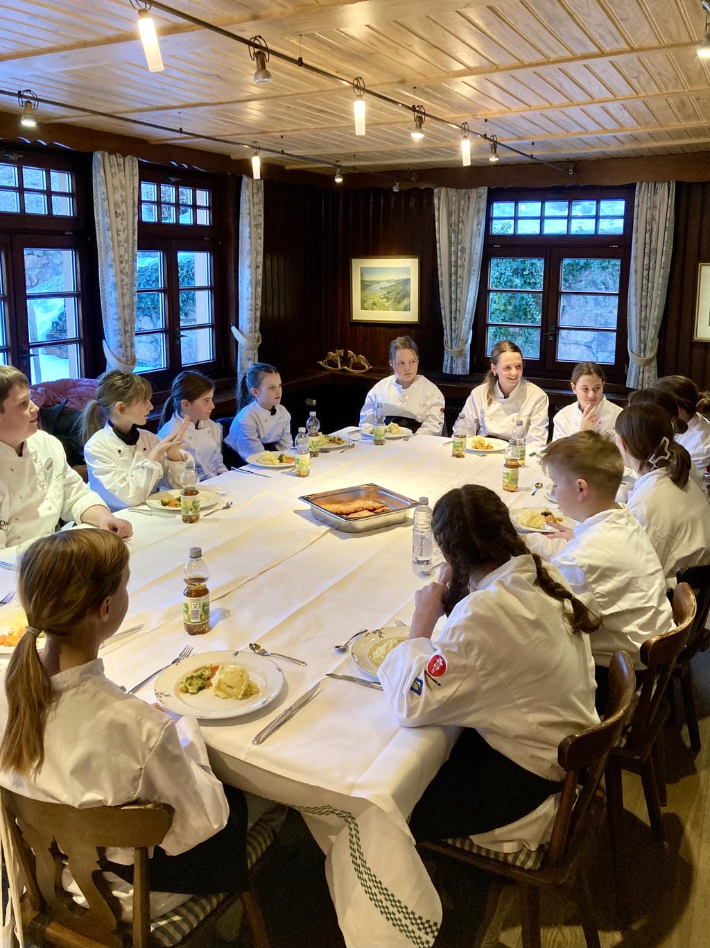 Hochbetrieb im Adler Bärental! Und das an einem Ruhetag! 14 von 15 Kindern der Schlemmerbande Hochschwarzwald sind zu Gast bei Aline Wimmer-You, die abwechselnd mit zwei weiteren Naturpark-Wirten und Meistervereinigungsmitgliedern die Gruppe betreut. Nachdem es bei Johannes Dünnebacke vom Hotel Schlehdorn rund um Kürbis ging und bei Matthias Hermann in seiner Waldkuchi Süßes gebacken wurde, gibt es diesmal … Schnitzel!